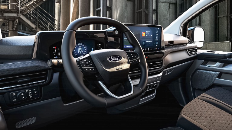 Urobte si zo svojej dodávky mobilnú kanceláriu. Ford SYNC4 sa vďaka novému 5G modemu vyznačuje vylepšenou konektivitou, bezproblémovou integráciou smartfónu, 13” dotykovou obrazovkou a konverzačným hlasovým ovládaním. Poskytuje tiež aktuálne dopravné informácie, ktoré vám pomôžu efektívnejšie naplánovať trasu. K šikovným novinkám bude v roku 2024 patriť pohodlné uloženie notebooku medzi sedadlami, viac USB vstupov a inovatívne funkcie sklopného volantu. To po zaparkovaní umožňuje využiť ho ako pracovnú plochu pre notebook alebo jedálenský stolík!